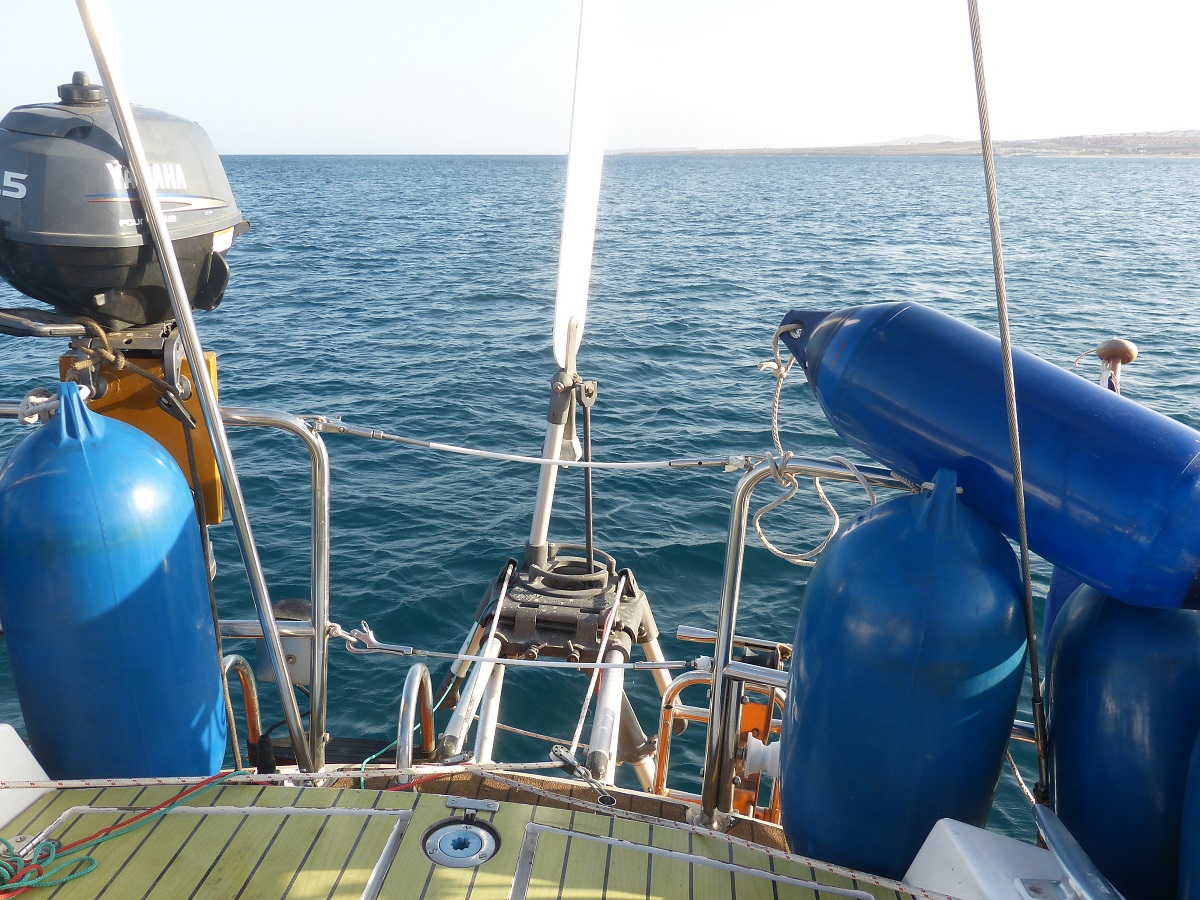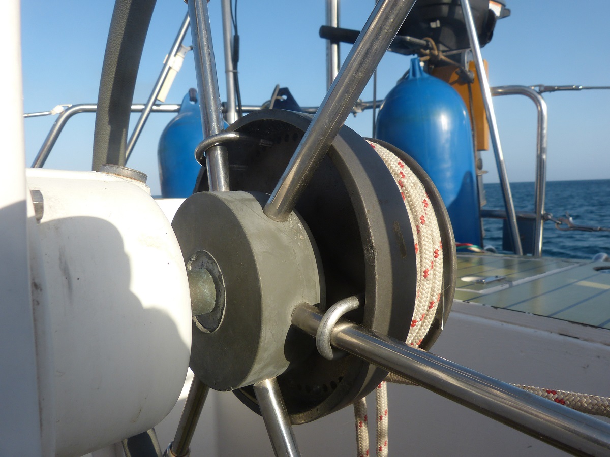Und ganz wichtig: Emma, unsere Windfahnensteuerung hat ihren Dienst wieder angetreten. Seit Ende August letzten Jahres ist sie am Heck montiert. Versuche diese über die Notpinne zu nutzen scheiterten. Über das Hauptruder hieß es allerortens, dass dies bei einer Hydrauliksteuerung eher nicht funktioniert.
