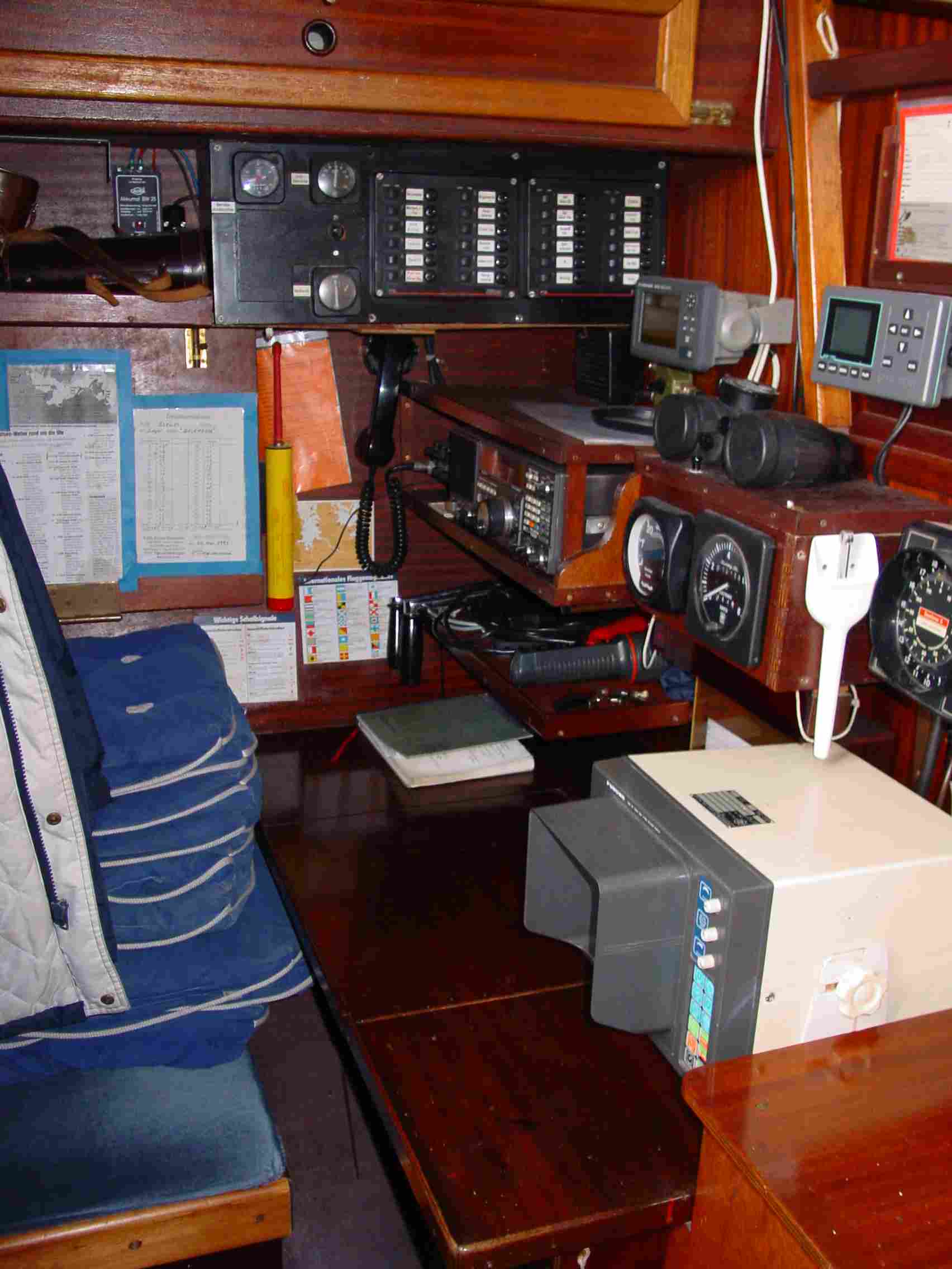 Positiv war das Gefühl, das es bereits deutlich unter K€ 50 ein halbwegs akzeptables Angebot gab. Und vor allem der „fast“ neue 6-Zylinder Dieselmotor. Das Kasko war vermutlich auch ok, etwas störend empfand ich den verstärkten Kiel. Irgendwie das Gefühl, dass sich das nicht positiv auf die Segeleigenschaften auswirkt, zumal ich tendenziell eher einen Langkieler für geeignet erachtete. Rest Kleinigkeiten, aber doch eher nicht kaufinspirierend; Windsteuerung kurz vorher separat verkauft, so gut wie keine elektrische Anlage vorhanden (ein paar einfache Batterien, nicht angeschlossen) und weitere Kleinigkeiten. Aber halt eine von mir gern gemochte Ketch, allerdings halt für eine Ketch etwas zu klein. Na ja, immer diese für und wieder, die uns im Seglerleben wohl noch oft begleiten werden.