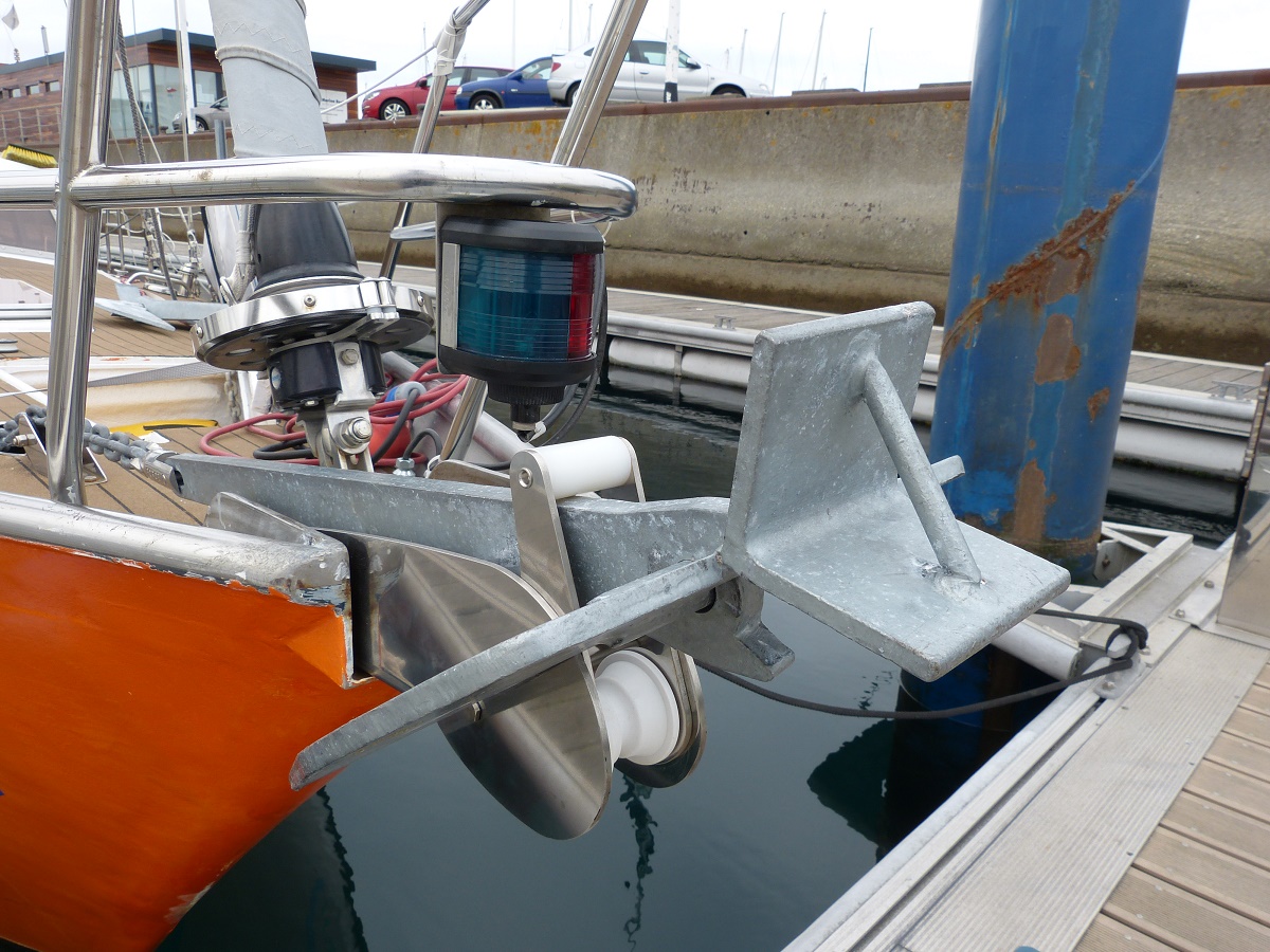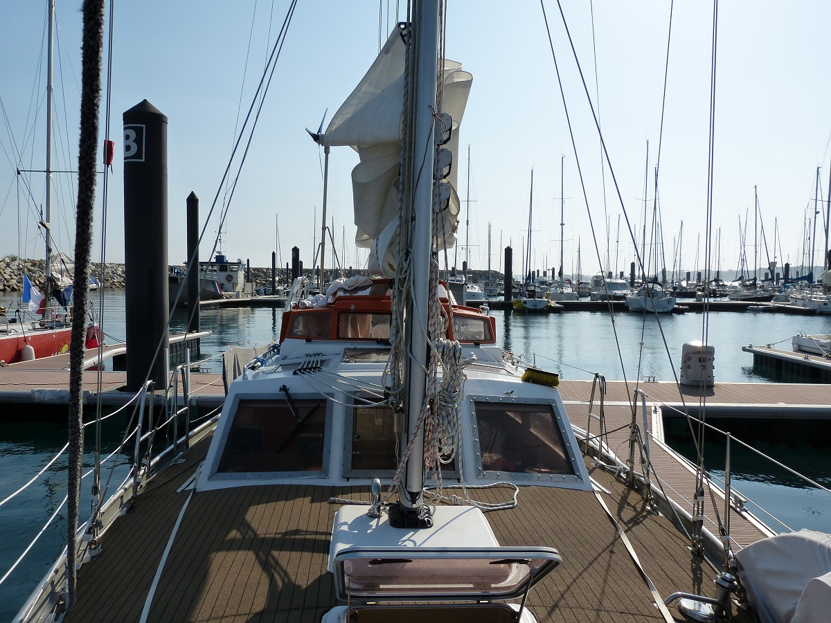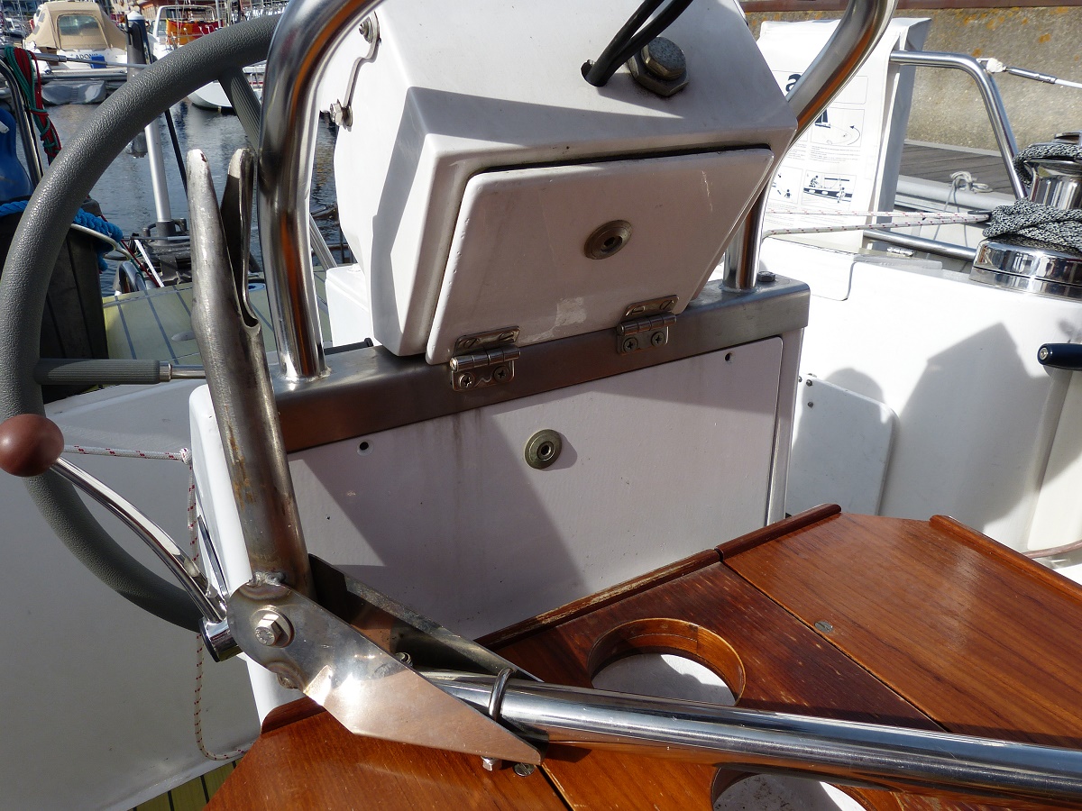 Shit. Was tun. Wir nutzen die Windsteuerung noch nicht, da unsere (Not-)Pinne Mist ist. Restliche Strecke von Hand steuern, da wir keinen Strom produzieren können (bis dahin hatten wir wenig Sonne und der Windgenerator produziert anscheinend nur bei Sturm richtig Strom).