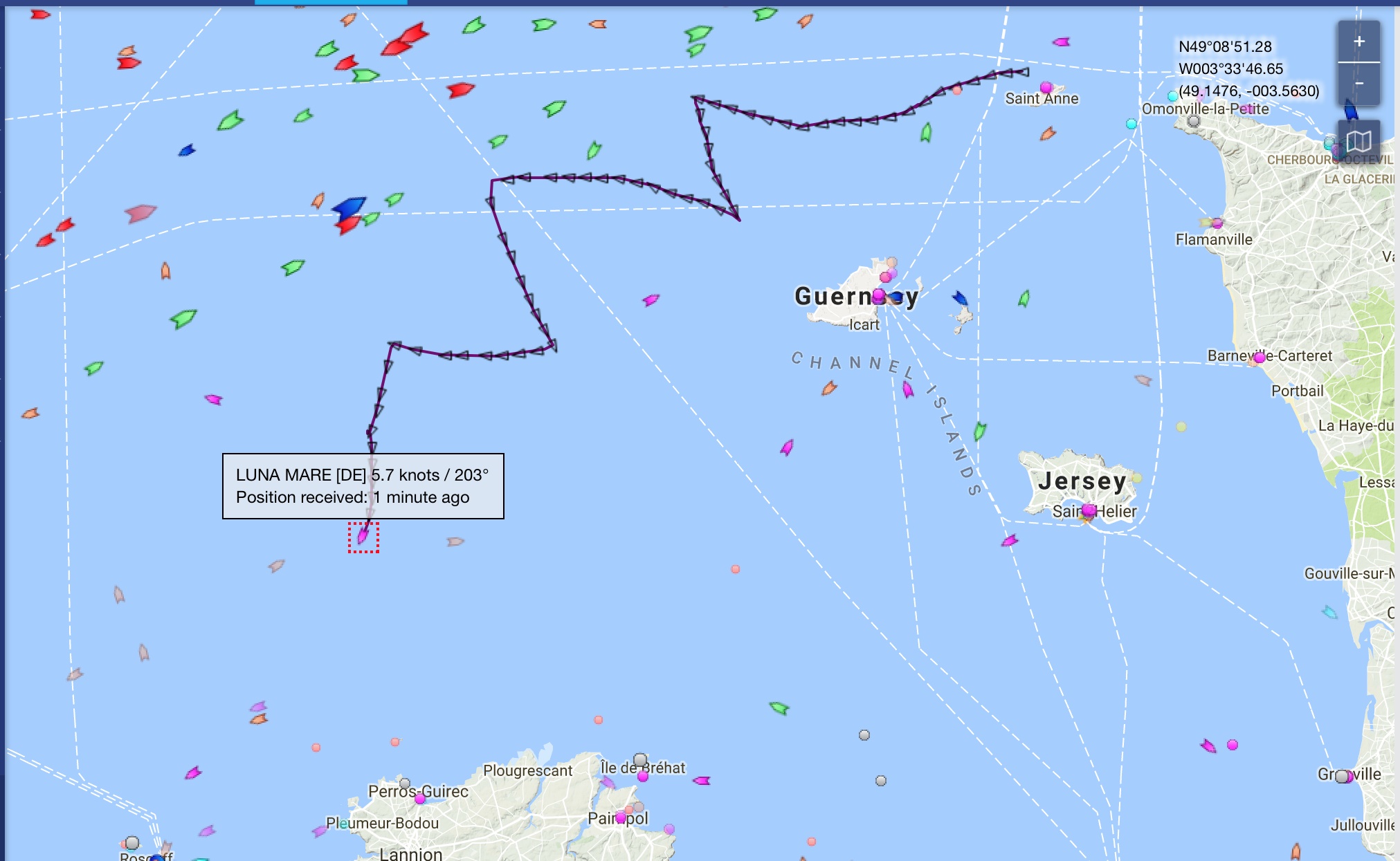 Allerdings kommen wir nur langsam voran, da der Wind mal wieder von vorne kommt und wir entsprechend kreuzen müssen. Nach 24 Stunden haben wir uns dem 390 sm entfernten Ziel nur um 70 sm angenähert. Die Hälfte des Weges haben wir nach rund 65 Stunden erreicht. Da die Ankunftszeit für 1:40 Uhr in der Nacht von Samstag auf Sonntag berechnet wurde, macht das nichts, wir kommen eh lieber bei Tageslicht an.