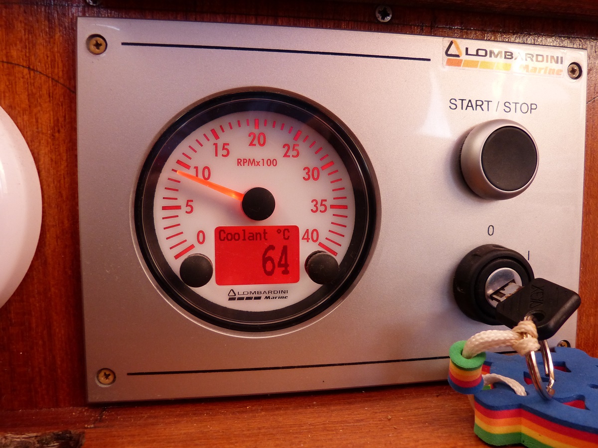 Das ist toll, aber was nützt Wind aus der richtigen Richtung, sofern er zu schwach ist um uns voran zu bringen. Also Motor an um so lange zu motoren, bis der Wind wieder ausreichend Stärke gewonnen hat. Ich hatte ja von unseren Motorproblemen berichtet. In den letzten 3 Tagen lief er einmal 3 Stunden und ging dann wieder von selbst aus, dann zwei Stunden zum Laden der Batterie ohne das er von selbst ausging.
