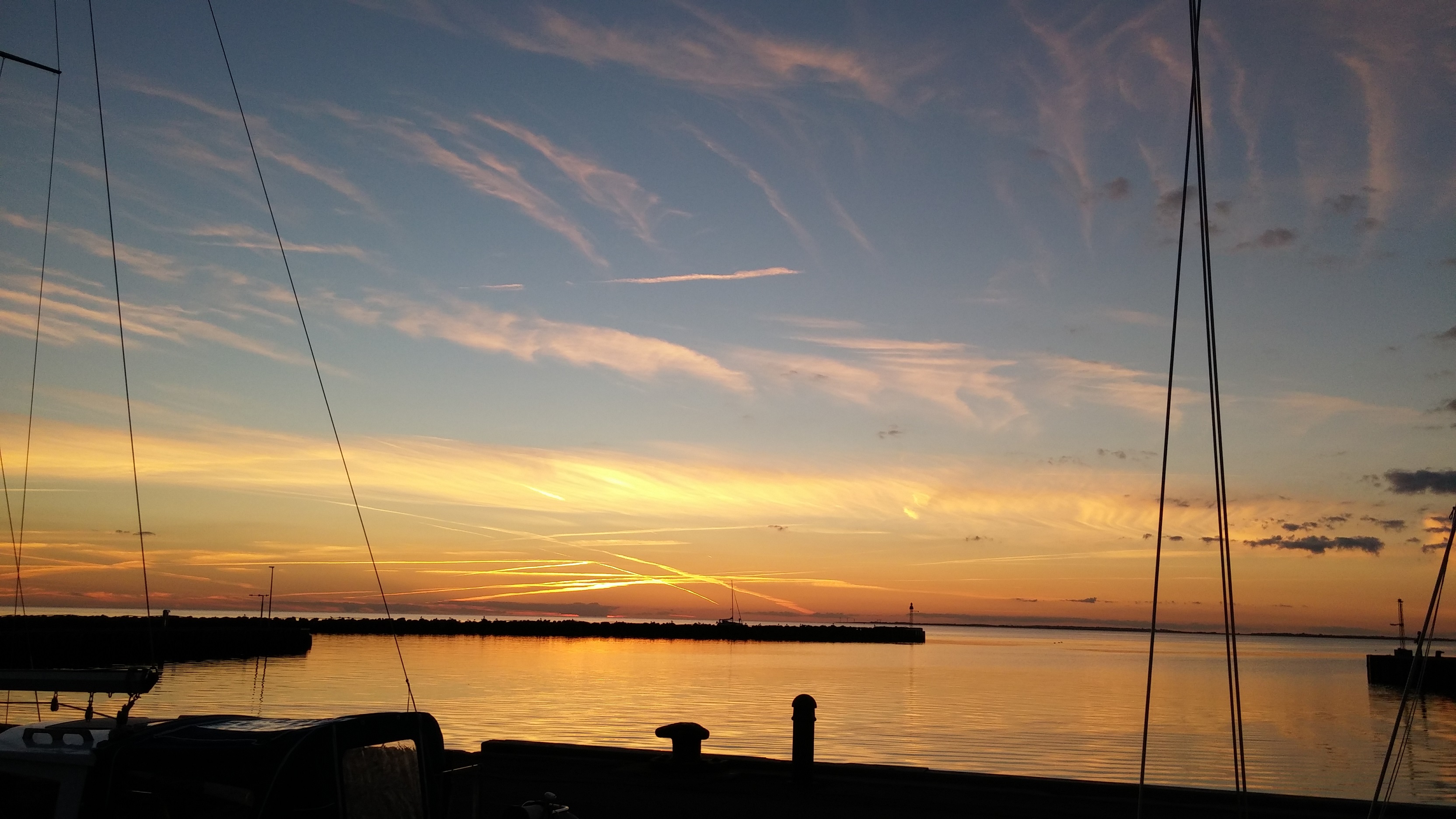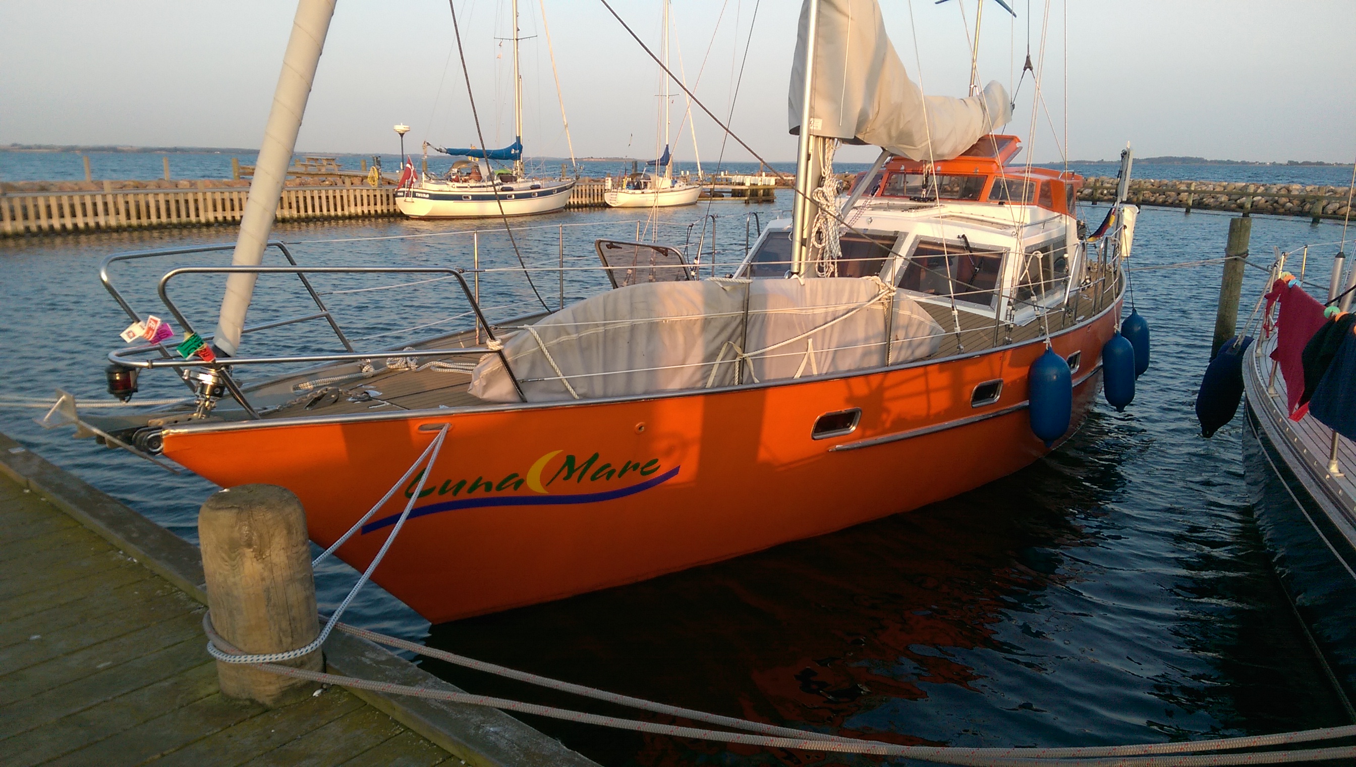Ende gut, alles gut: Nun liegen wir in unserem neuen Heimathafen. Noch klar Schiff gemacht und dabei gleich wundervolle Segelkameraden kennen gelernt, Marina und Uwe von der SY Alaya, ebenfalls in Langfahrtvorbereitung. Nachdem die „erfahrene“ Crew der Luna Mare noch nie ein Vorsegel geborgen hatte, war deren Hilfe aufs herzlichste Willkommen. Insbesondere die ausgereifte Technik, auf kleinsten Raum Haupt- und Vorsegel fachmännisch so zusammen zu legen, dass sie in die vorhandenen Segelsäcke passen. Vielen Dank dafür. Vielleicht sehen wir uns ja an Silvester!