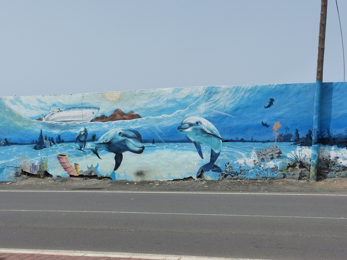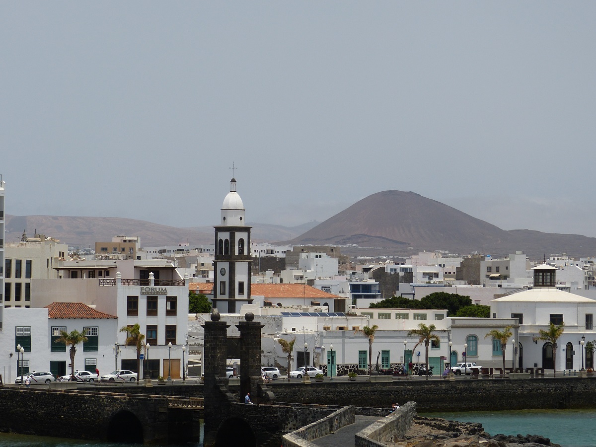 Arrecife selbst ist eine schöne mittelgroße Stadt. Nicht zu groß und turbulent, aber groß genug, so dass sie alles bietet, was man für den täglichen Gebrauch so benötigt. Nicht weit von der Marina ist ein kleiner, aber schöner Sandstrand. 20 Minuten zu Fuß, oder falls wir zu faul sind mit einem kostenlosen Bus, der hier die Uferpromenade hin und her pendelt.