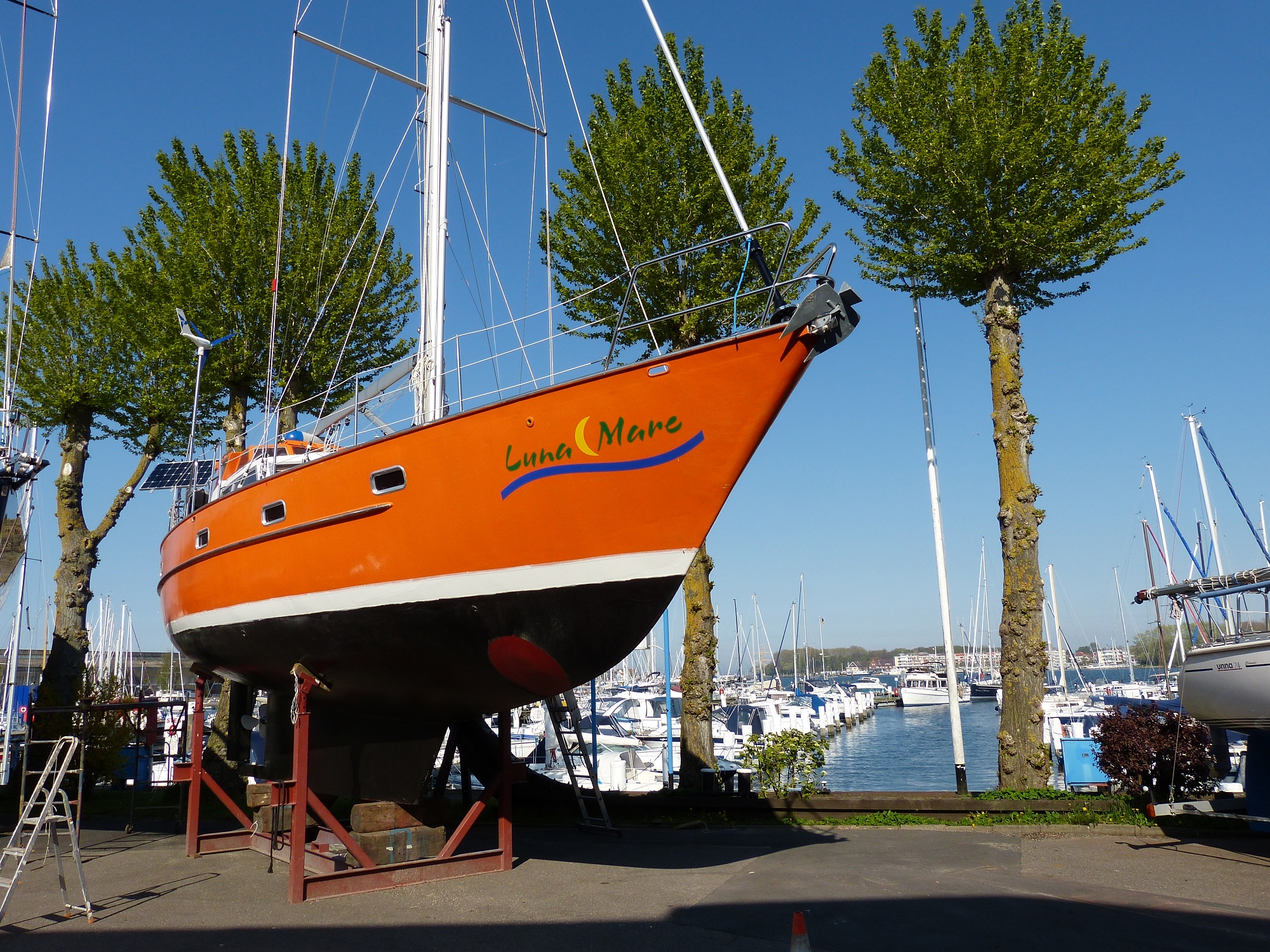 Glücklicherweise wurde das Wetter besser, so richtig schön sogar. Dadurch hatten wir heute morgen den zweiten und jetzt gleich noch den dritten Primer-Anstrich. Mit dem Krantermin am 15.05. passt jetzt alles wieder und wir können in Ruhe noch die restlichen Anstriche bis zum Antifouling anbringen.