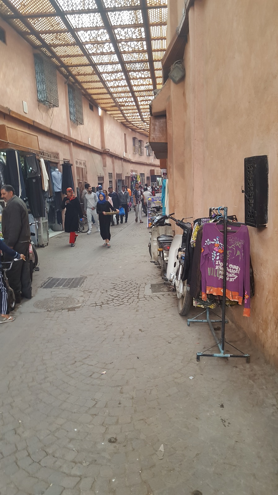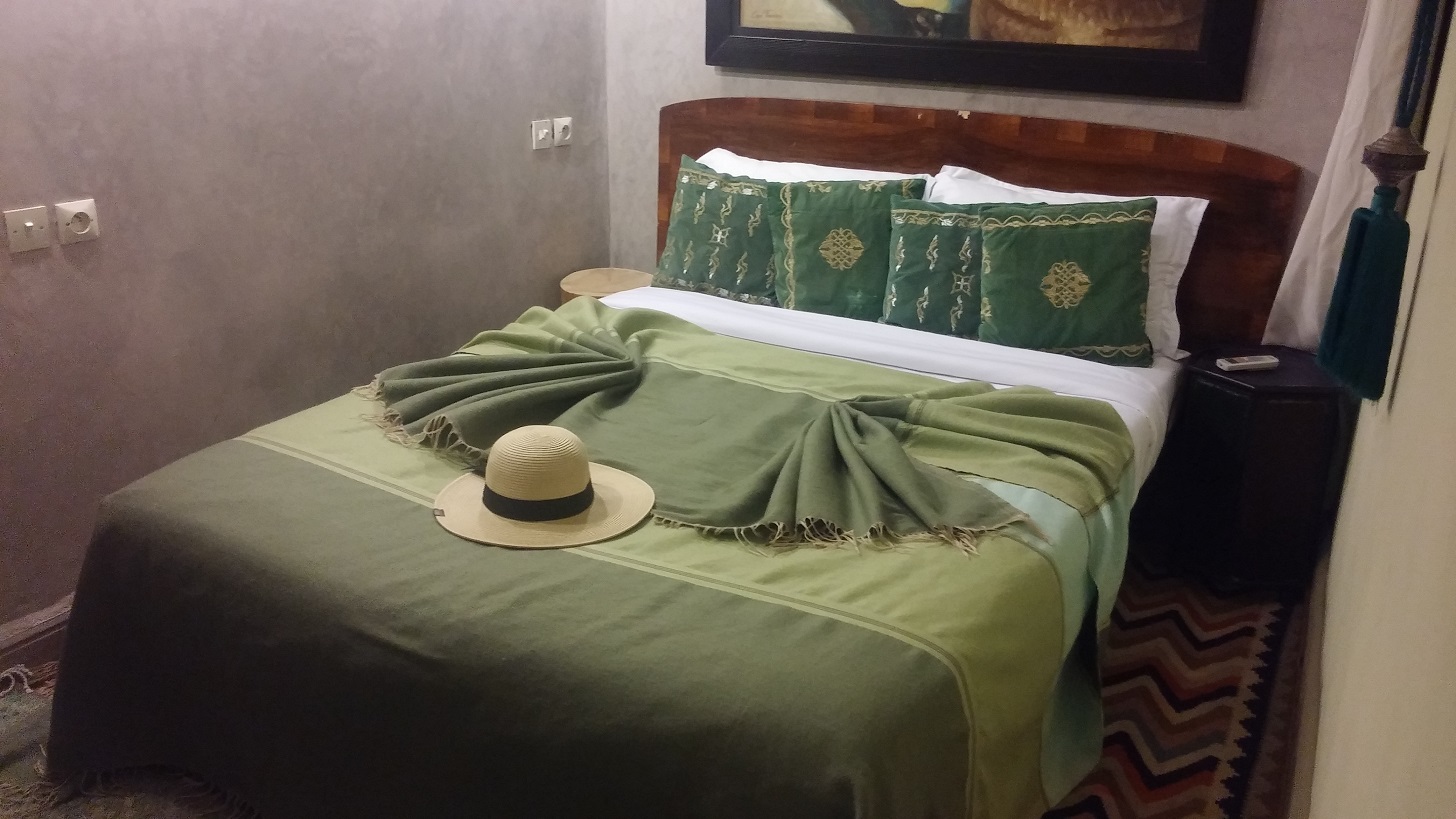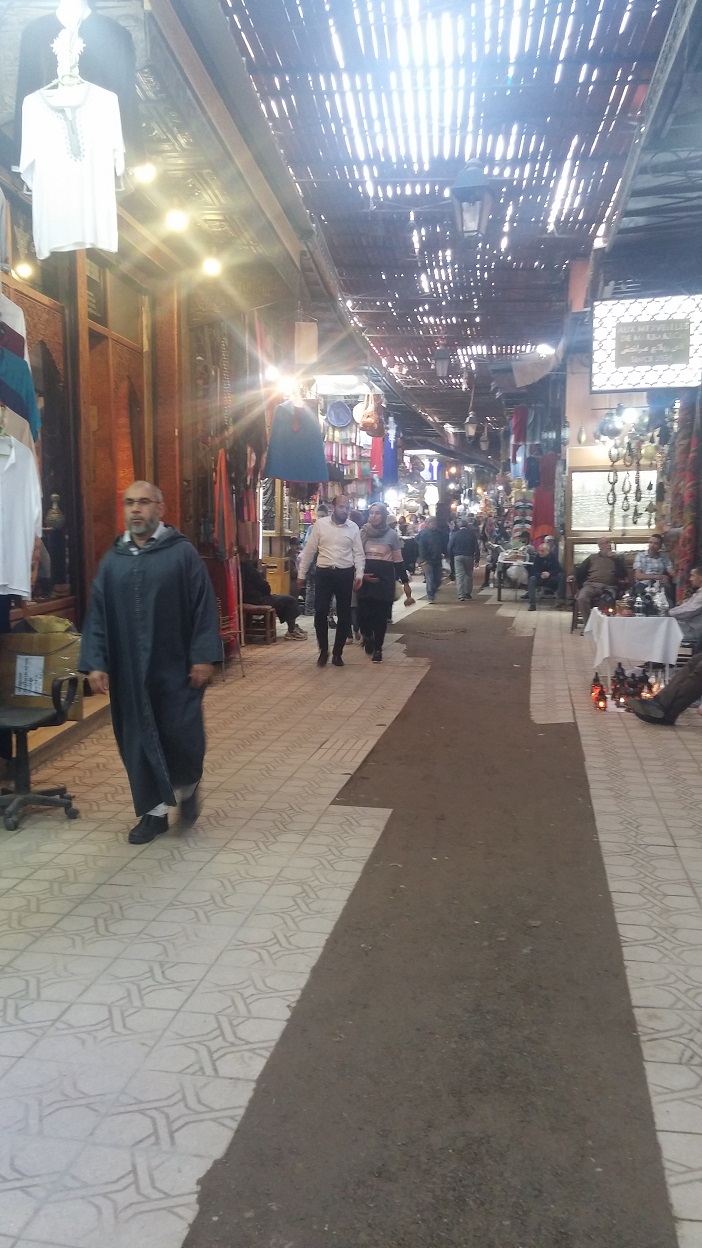 Etwas umhergeirrt, aber die Bushaltestelle gefunden. Die ist nicht wirklich ausgeschildert, aber auf Grund der umherstehenden Leute haben wir eine Bushaltestelle vermutet und kurz darauf kam auch schon ein Bus. Und tatsächlich fast nach Fahrplan kommt dann auch unserer, die Linie 9, und fährt uns um die Medina rum Richtung Unterkunft. Beim Aussteigen zu spät bemerkbar gemacht, so müssen wir eine Busstation zurück laufen. Dann biegen wir in die Medina (Altstadt) ab. Dank goople maps, welches anscheinend auch ohne Internet funktioniert, nähern wir uns dem Ziel.