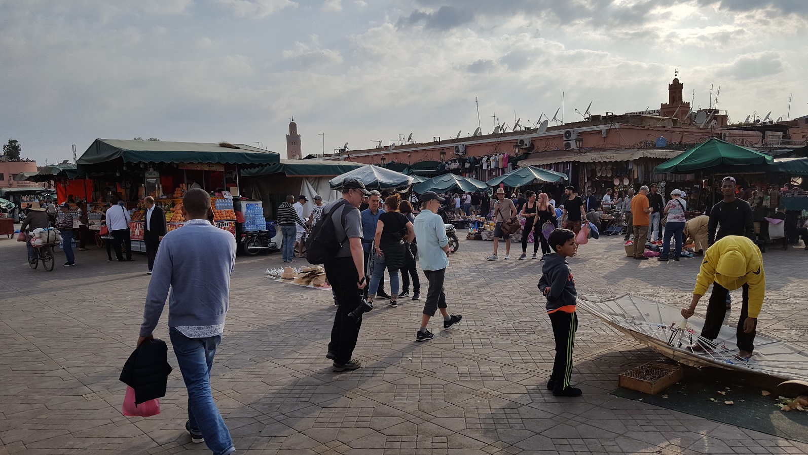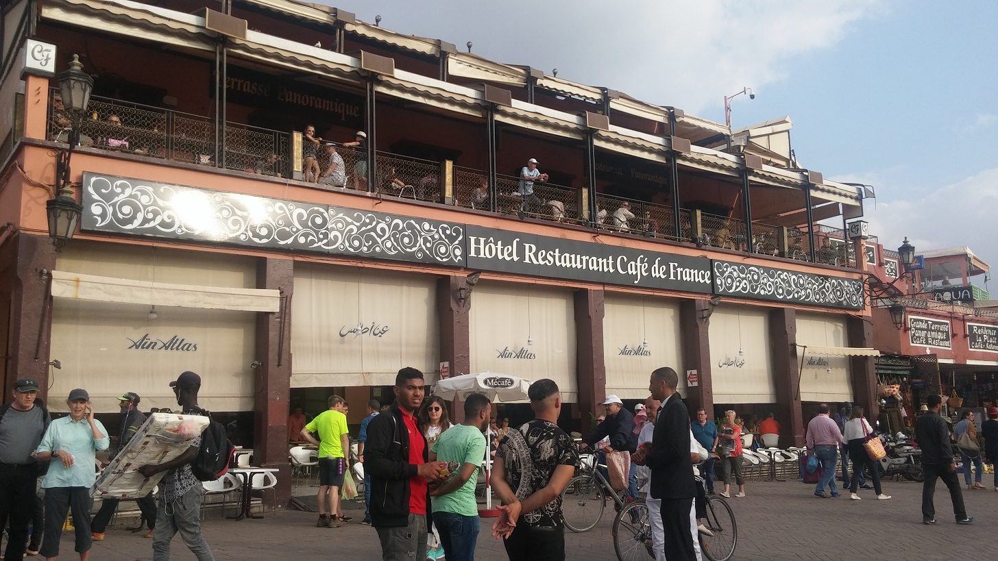 Dort gibt es auch SAT-TV, eben beginnt die Vorberichterstattung zum DFB-Pokal-Finale FCB-SGE (wir sind hier 2 h hinter D). Hilft alles nichts. Kann ja nicht nach Marrakesch fahren und dann die Skipperin vom Fußballschauen überzeugen. Also los zum bekannten Platz Djemma el-Fna.