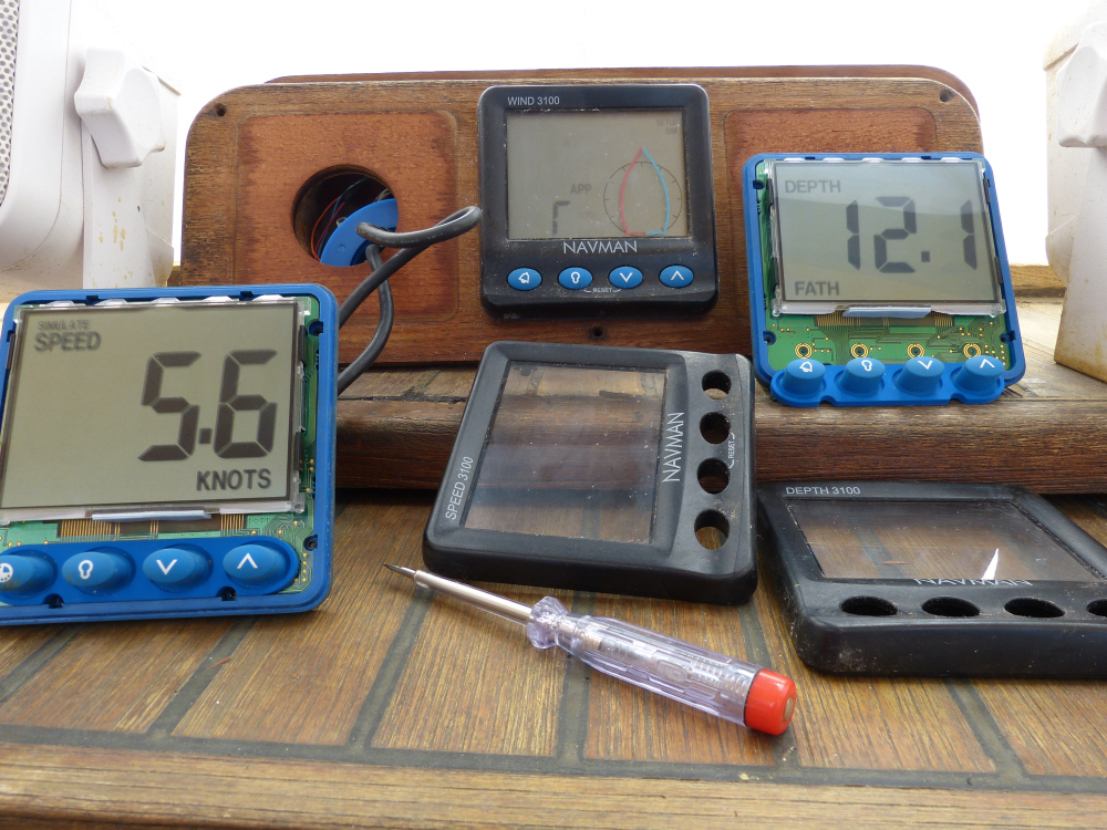 Heute war dann doch der Repariertag, Testtörn auf Morgen verschoben. Der Tag begann ganz gut mit der erfolgreichen Reparatur von drei Navigationsinstrumenten von Navman. Das Display hat nichts mehr angezeigt, aber dank dreier Reparaturkits von Indigo Electronics funktionieren die Teile jetzt wieder.