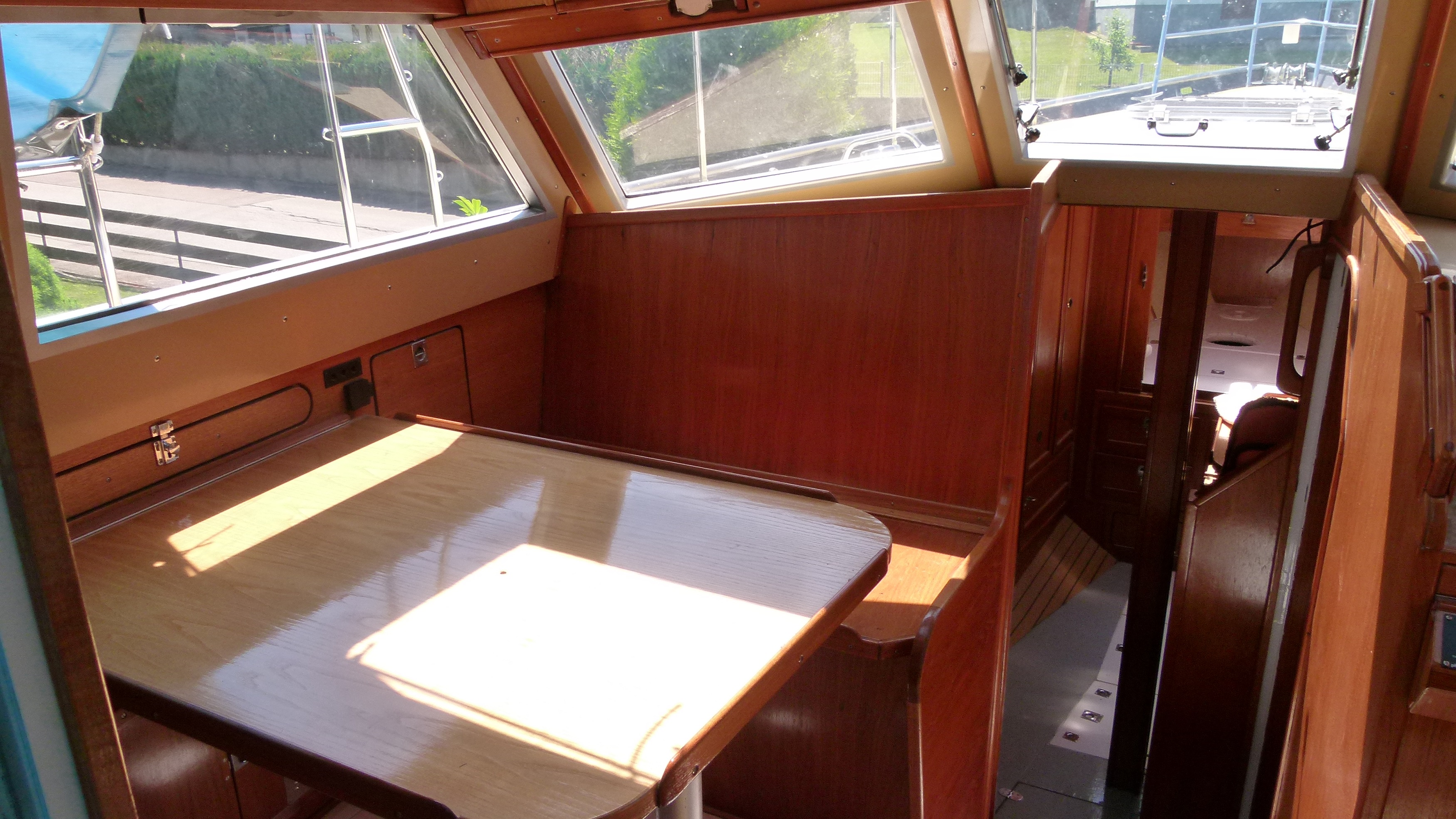 Zur Liegefläche absenkbare Tische/Bänke im Decksalon und unteren Salon