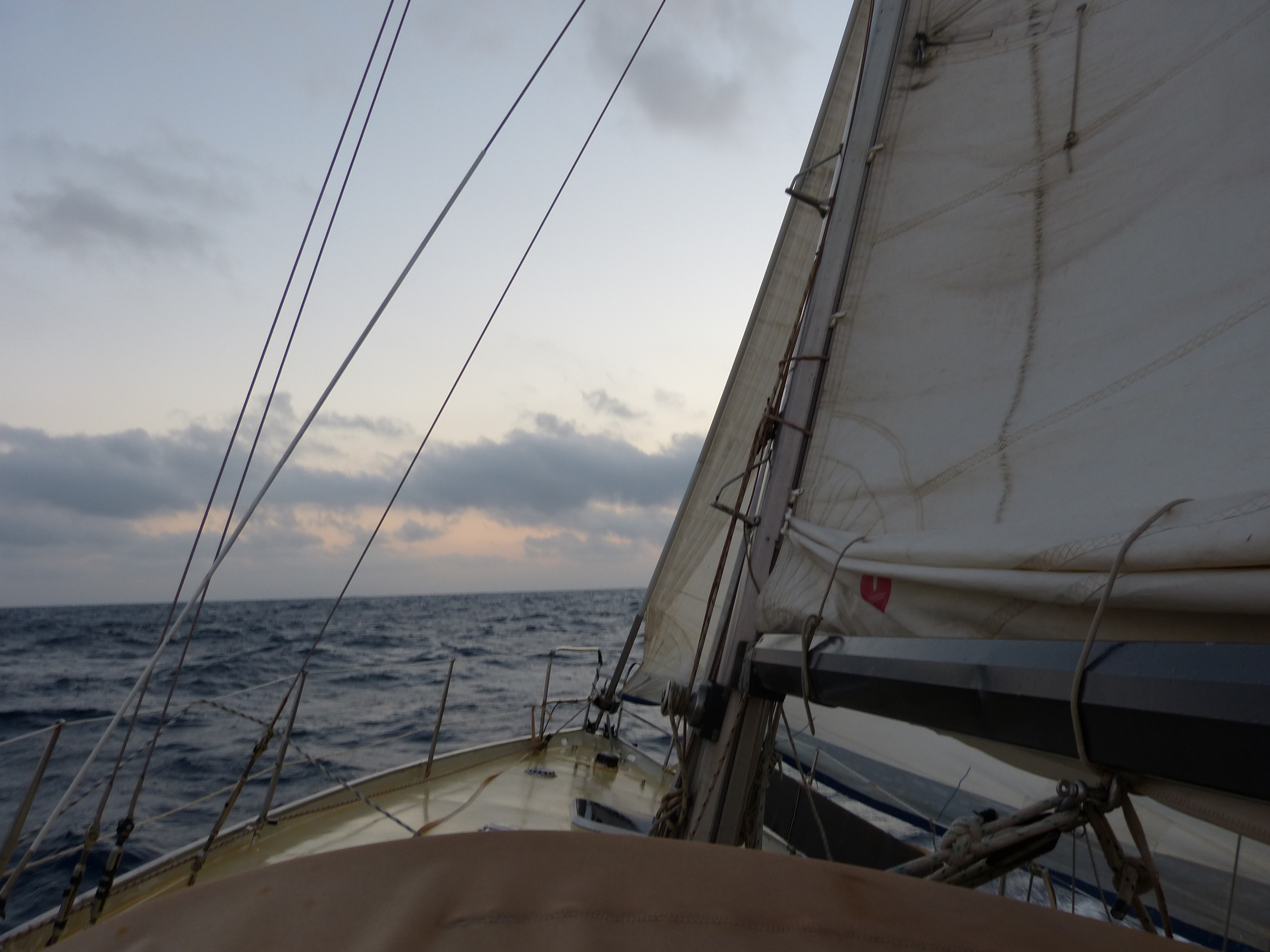 Die Tage und Nächte vergingen “wie im Fluge”. Wir hatten bereits zu Beginn das Groß ins erste Reff genommen und die Genua in voller Pracht gefahren. Dies blieb so bis zum Ende der Reise. Insgesamt hatten wir lediglich 4 mal eine Wende zu fahren und ebenfalls 4 mal das Boot wieder in Richtung zu bringen, nachdem unsere Emma (die Aries) eine (von uns ungewünschte) Wende eingebaut hat.